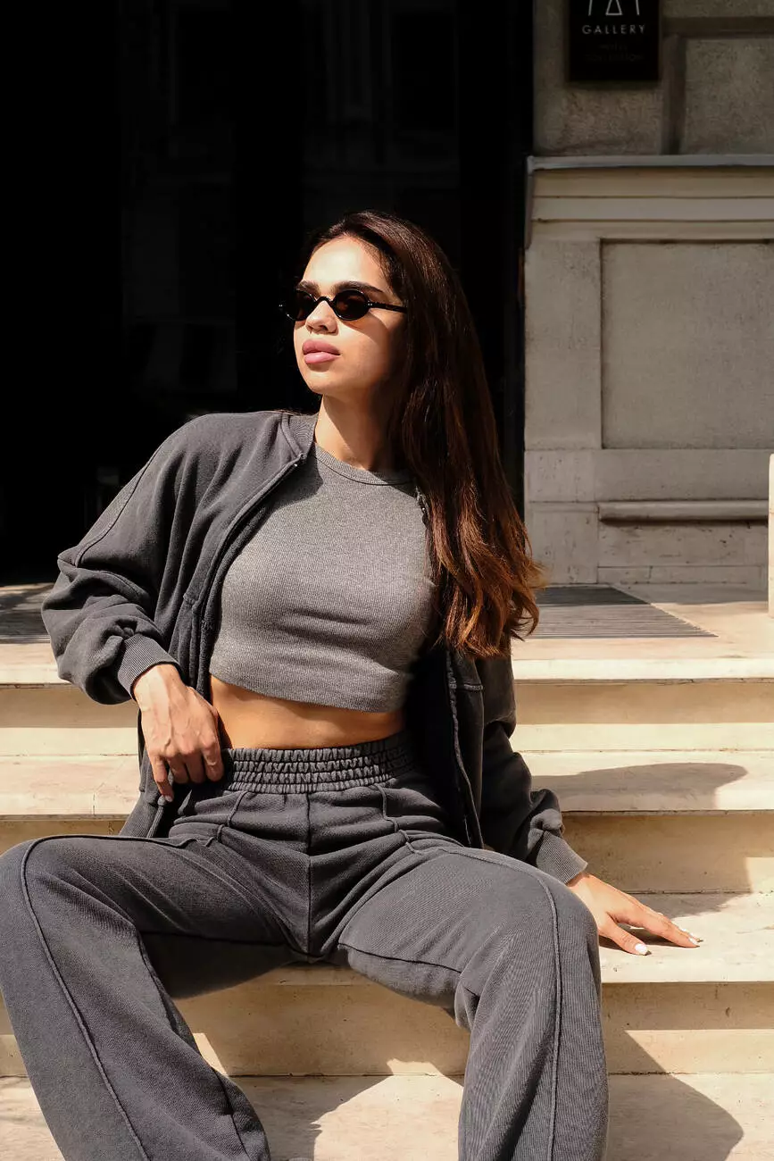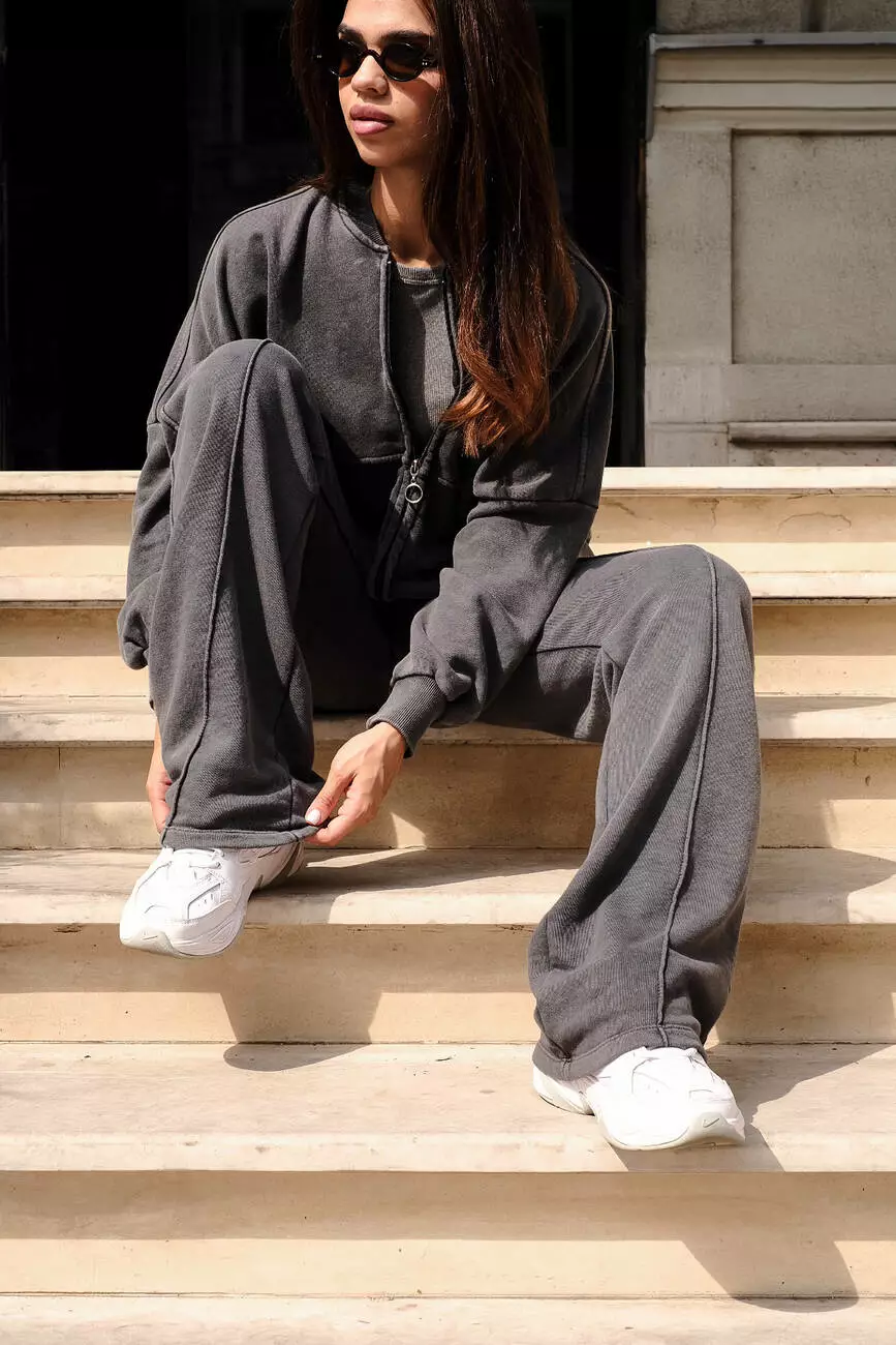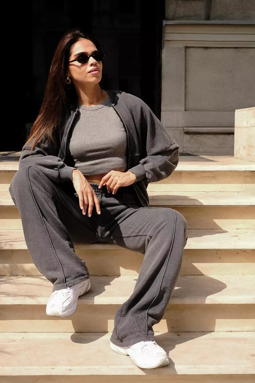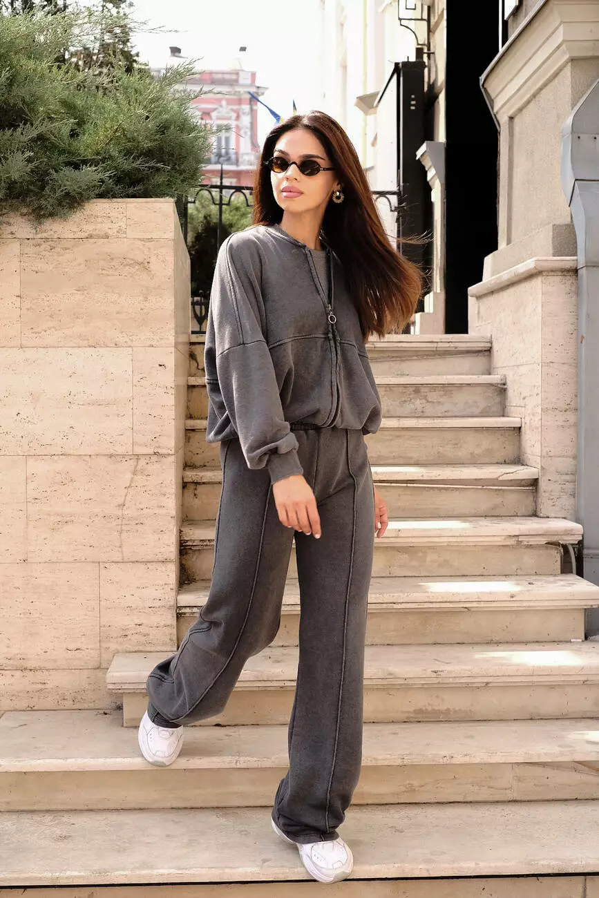 Костюм бомбер та палаццо темно-сірий