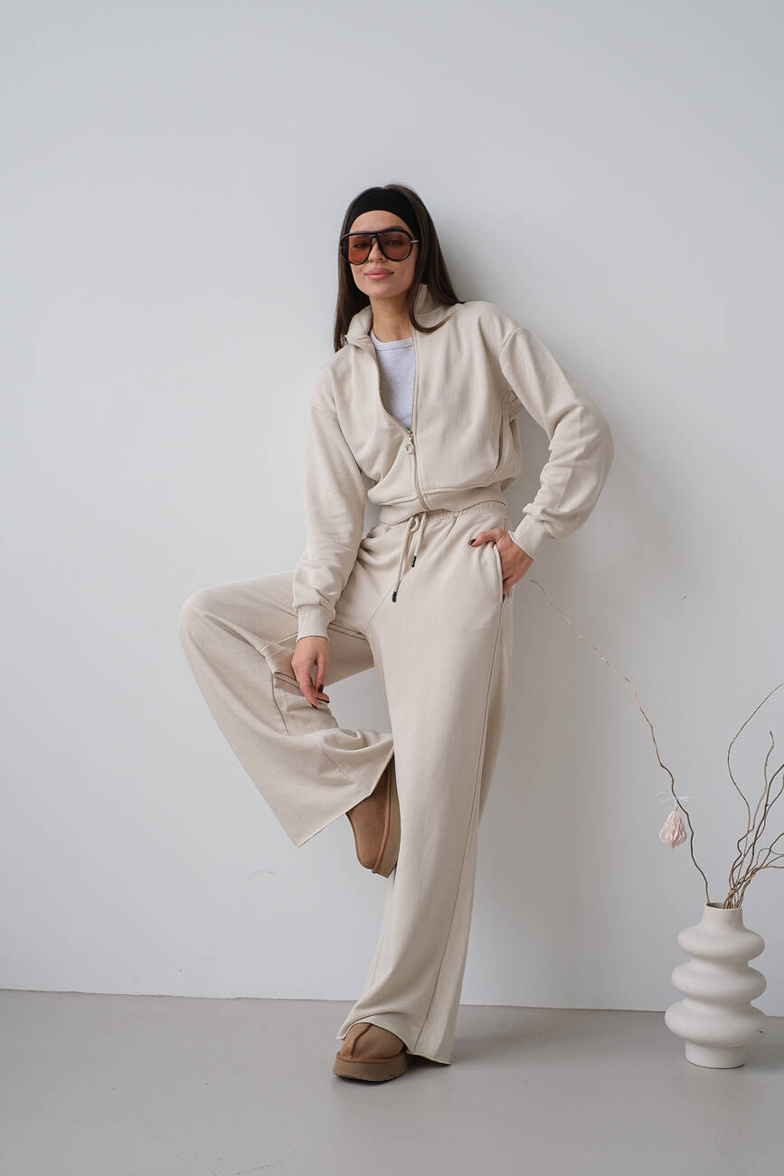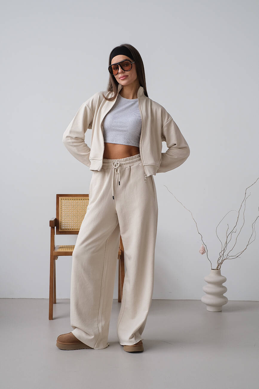 Костюм укорочений бомбер та палаццо бежевий