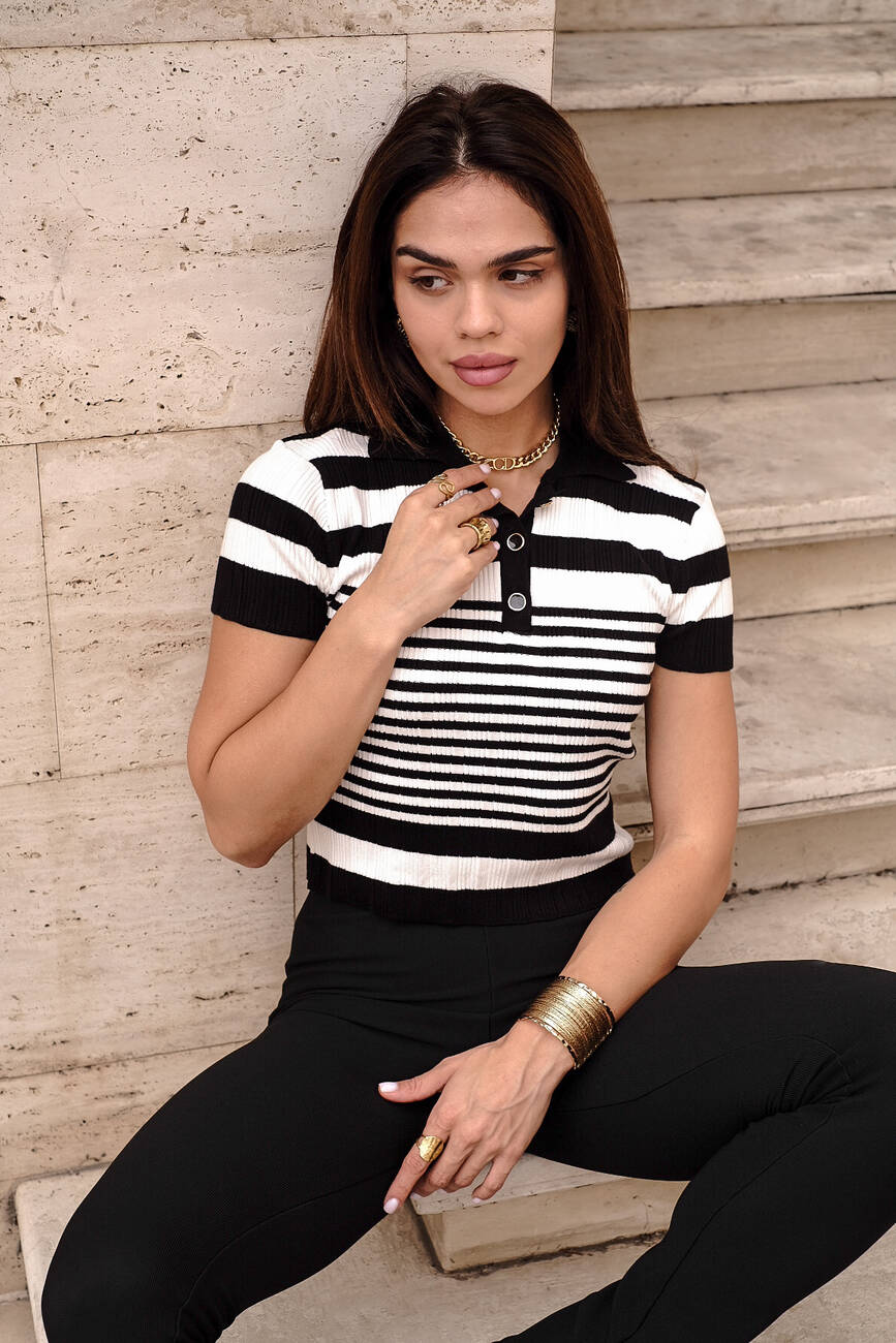 Поло жіноче у смужку чорне з білим