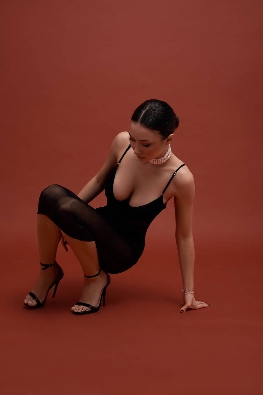 Прозора сукня із еластичної сіточки з каркасами в чашках. Сукня в обтяжку, чудово сідає по тілу. Бретелі регулюються.
